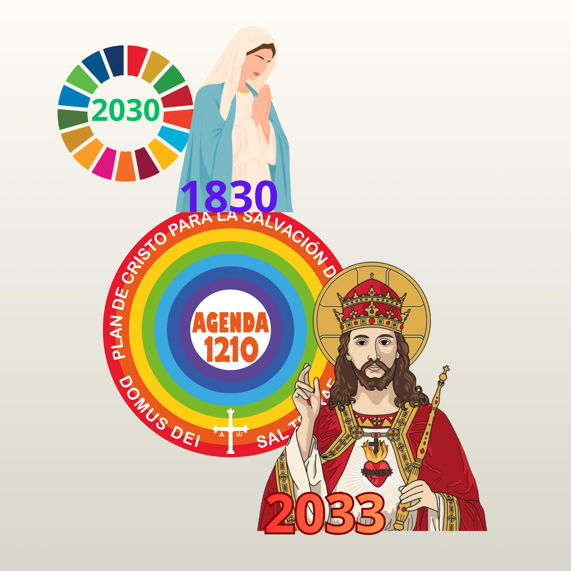 12 Apóstoles y 10 Mandamientos: una Vocación de vida y una Ley.Virgen del Pilar (12/10) y Virgen de Loreto (10/12): somos los Pilares del hogar de la Sagrada Familia.Descubrimiento de un Nuevo Continente (12/10): el del Sagrado Corazón de Jesús.12 min. de Oración (Santa Brígida) y un Diezmo (para que la Oración se convierta en Vocación).La Agenda 1210 es el Refugio que Cristo nos ofrece para los Tiempos Finales. Supone el inicio de la Reconquista de nuestro planeta para Cristo y de la construcción del Reinado Eucarístico (la lista de todos aquellos que se han “empadronado” y los “fondos” para comenzar a construirlo).Convertiremos el planeta en un Monasterio, desde el que recibiremos, rezando, a Satanás, con las 6 Puertas de nuestra Alma cerradas al Enemigo.Vacunaremos a todos con la Enfermedad del Amor, para que no se contagien de la Epidemia del Miedo que traerán estos Últimos Tiempos.Sólo nuestra Fe en Cristo, puede convertir la Gran Tribulación en la Gran Tribu de Acción contra Satanás, en la única familia verdadera: la Familia Espiritual.Los Diezmos se destinarán a formar y liberar Laicos (1 de cada 100), para que puedan Dedicarse, exclusivamente, a la causa de Cristo, a preparar Su Venida Eucarística.